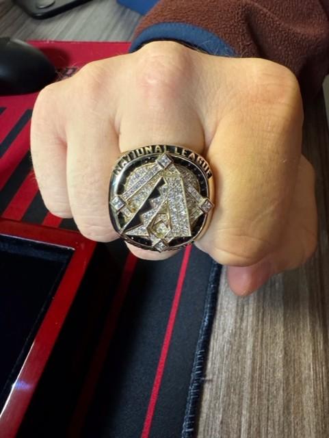 Jake Howell '19 wearing his National League Championship ring from the Arizona Diamondbacks.